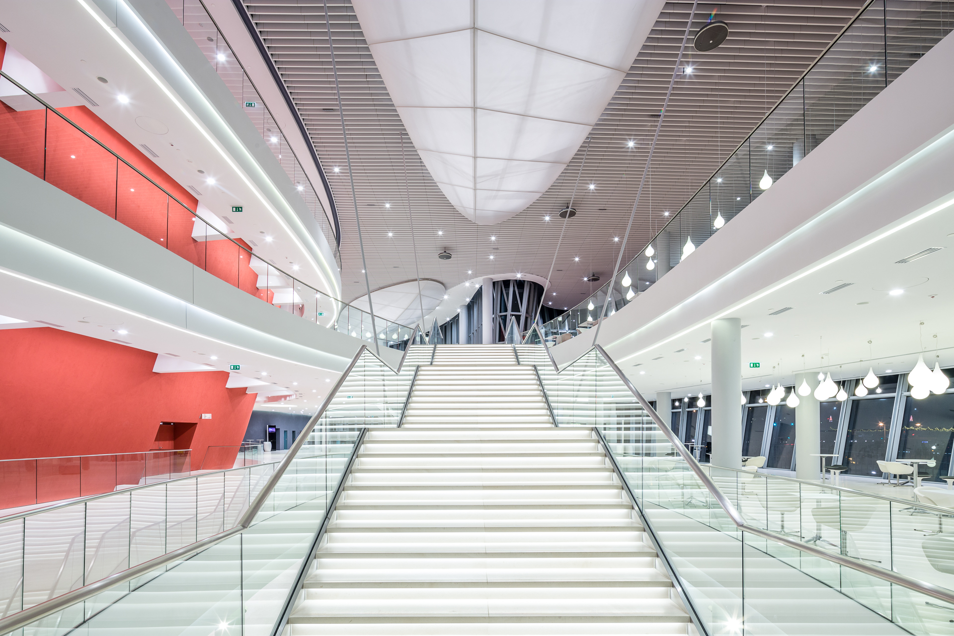 Additionally, ICE Kraków has 32 multifunctional meeting rooms and a three-level foyer with a view of the Wawel Royal Castle and Cracow’s skyline, which can be used as an exhibition space.